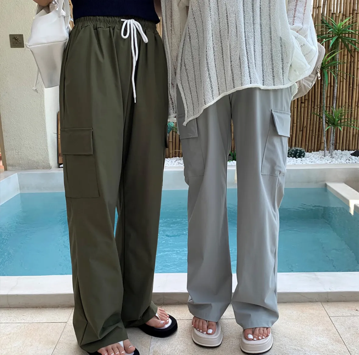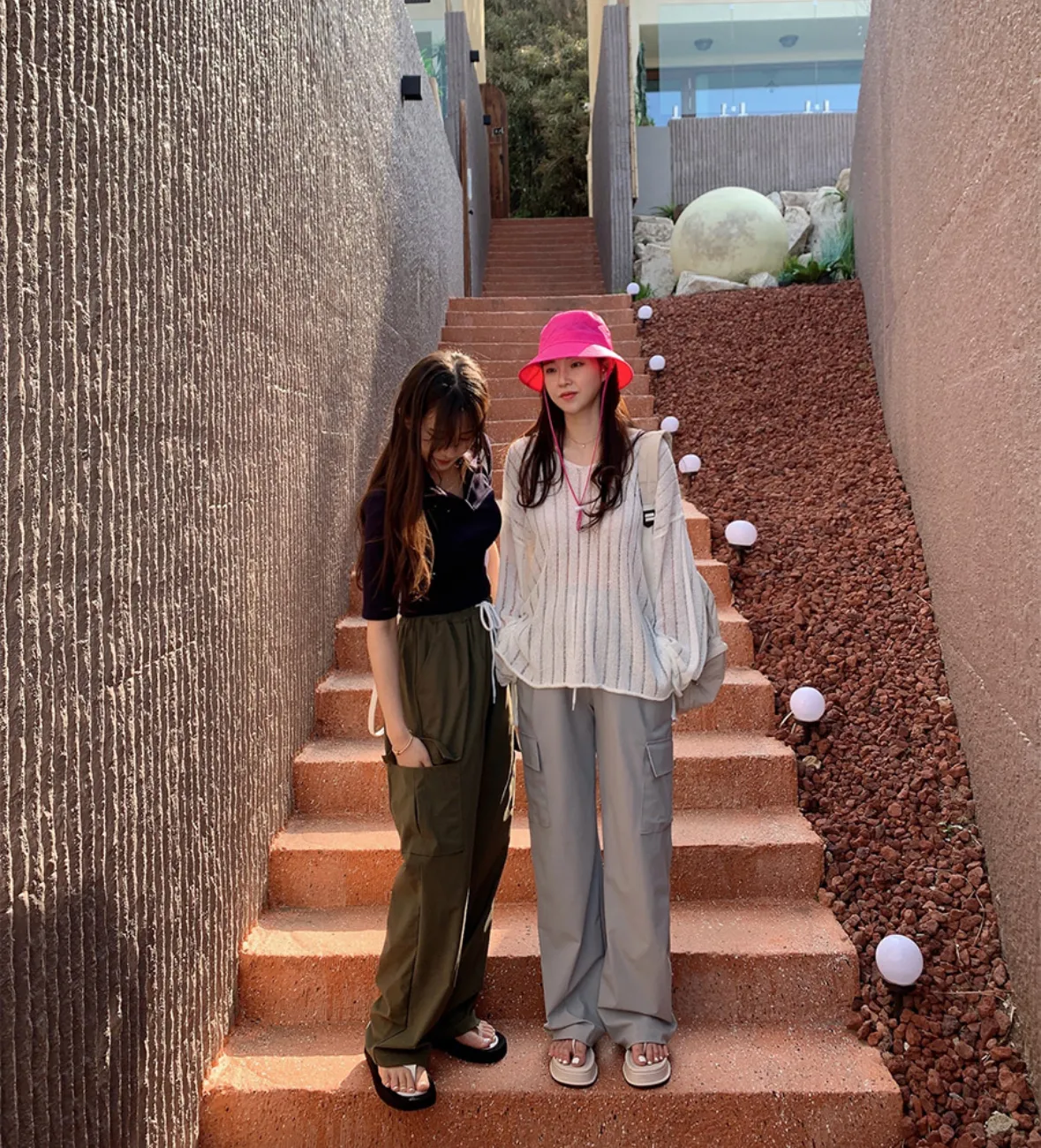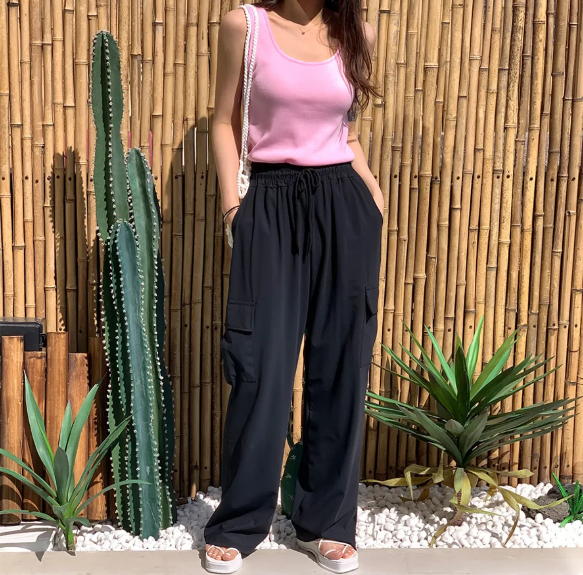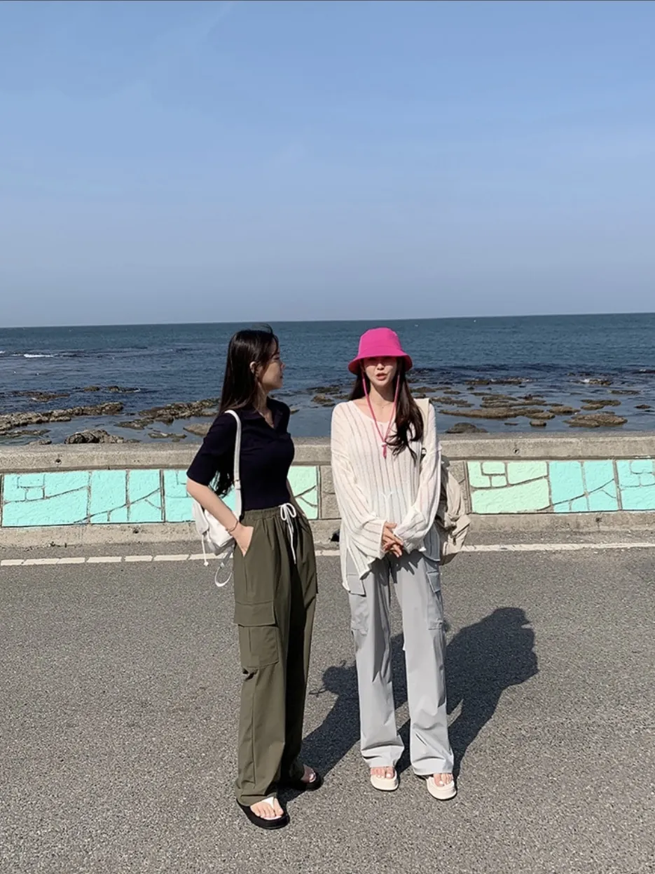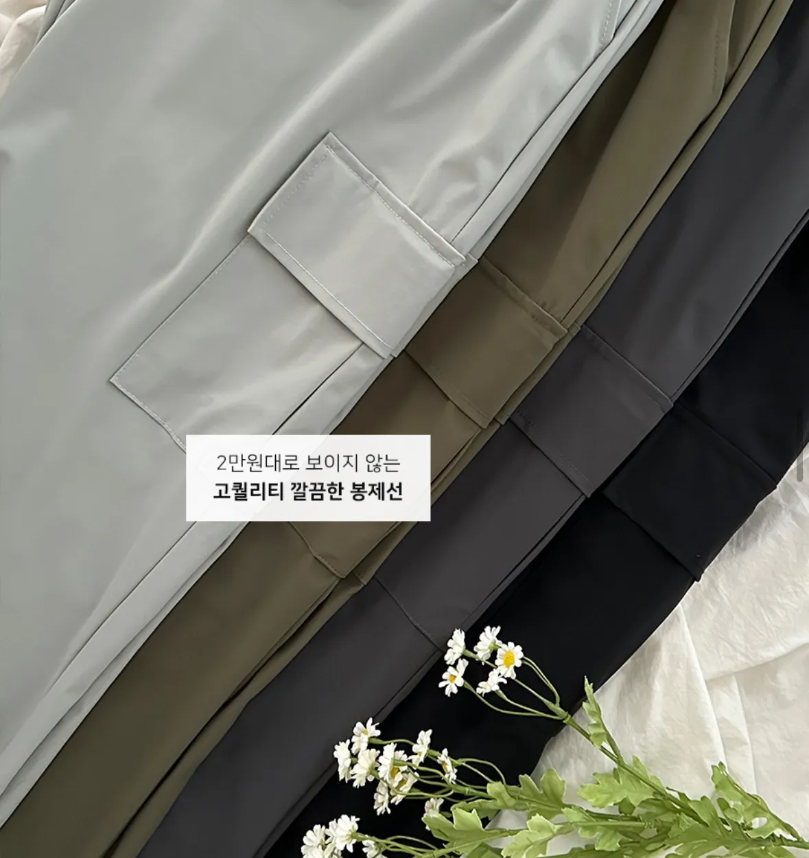 這系列的還有側口袋工裝縮口褲, 全素沒有側口袋的縮口褲