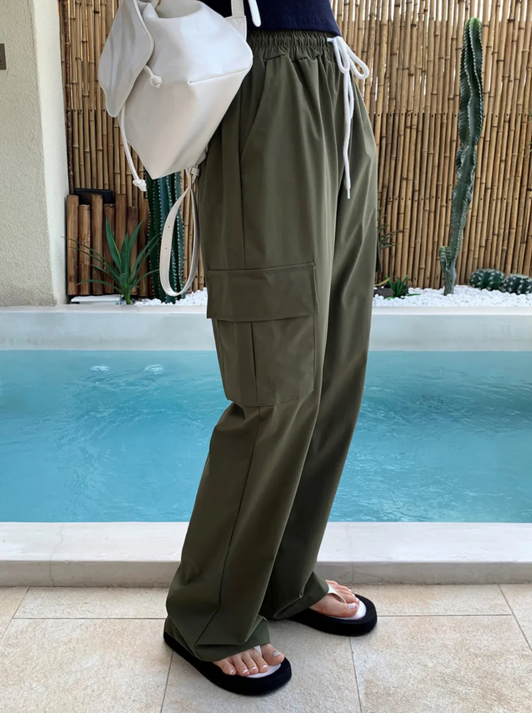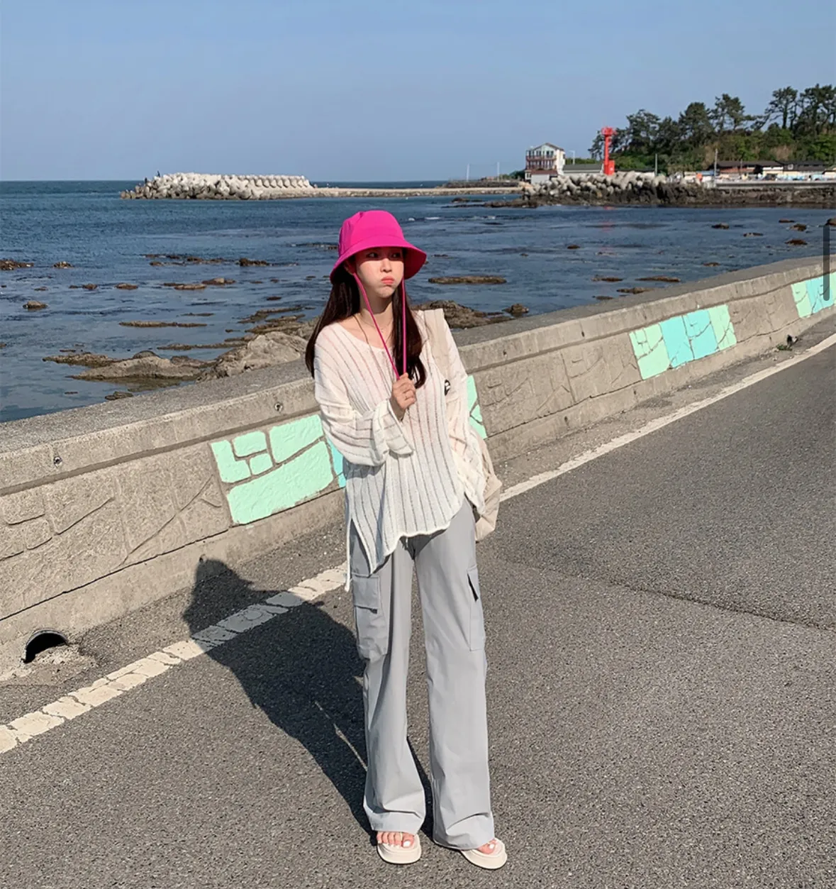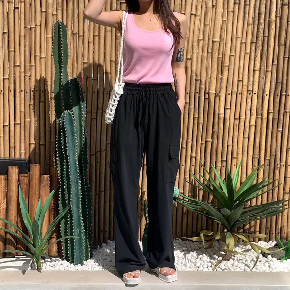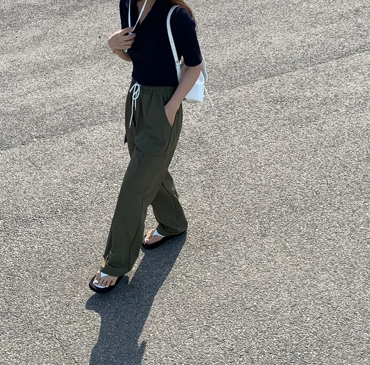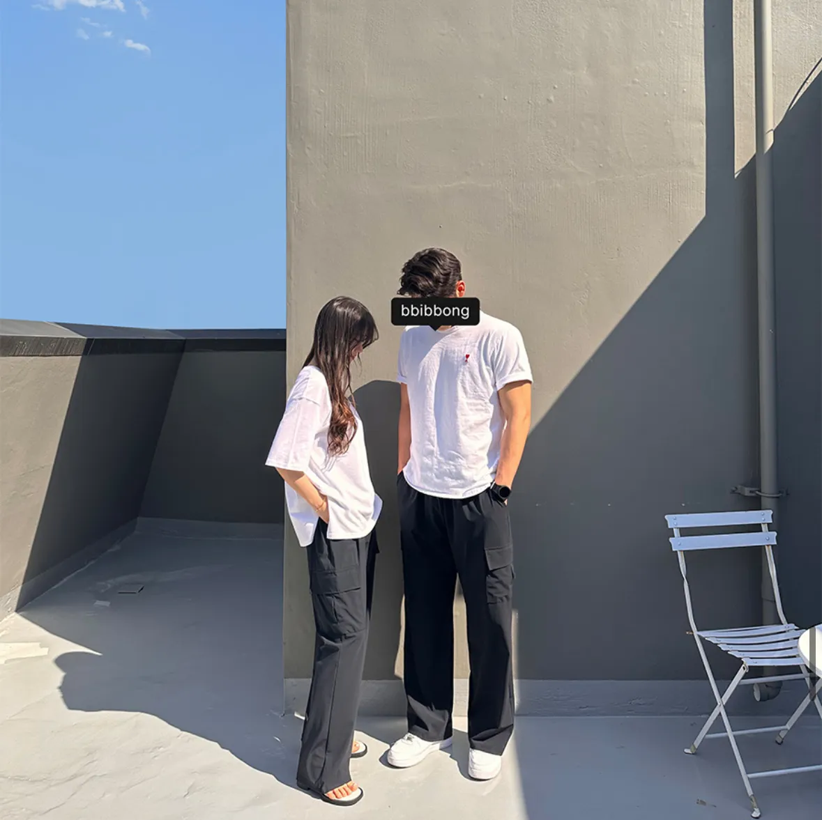 這系列的還有側口袋工裝縮口褲, 全素沒有側口袋的縮口褲