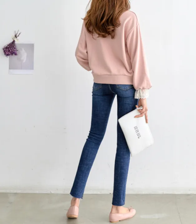 鬆緊腰太顯瘦深藍直筒褲