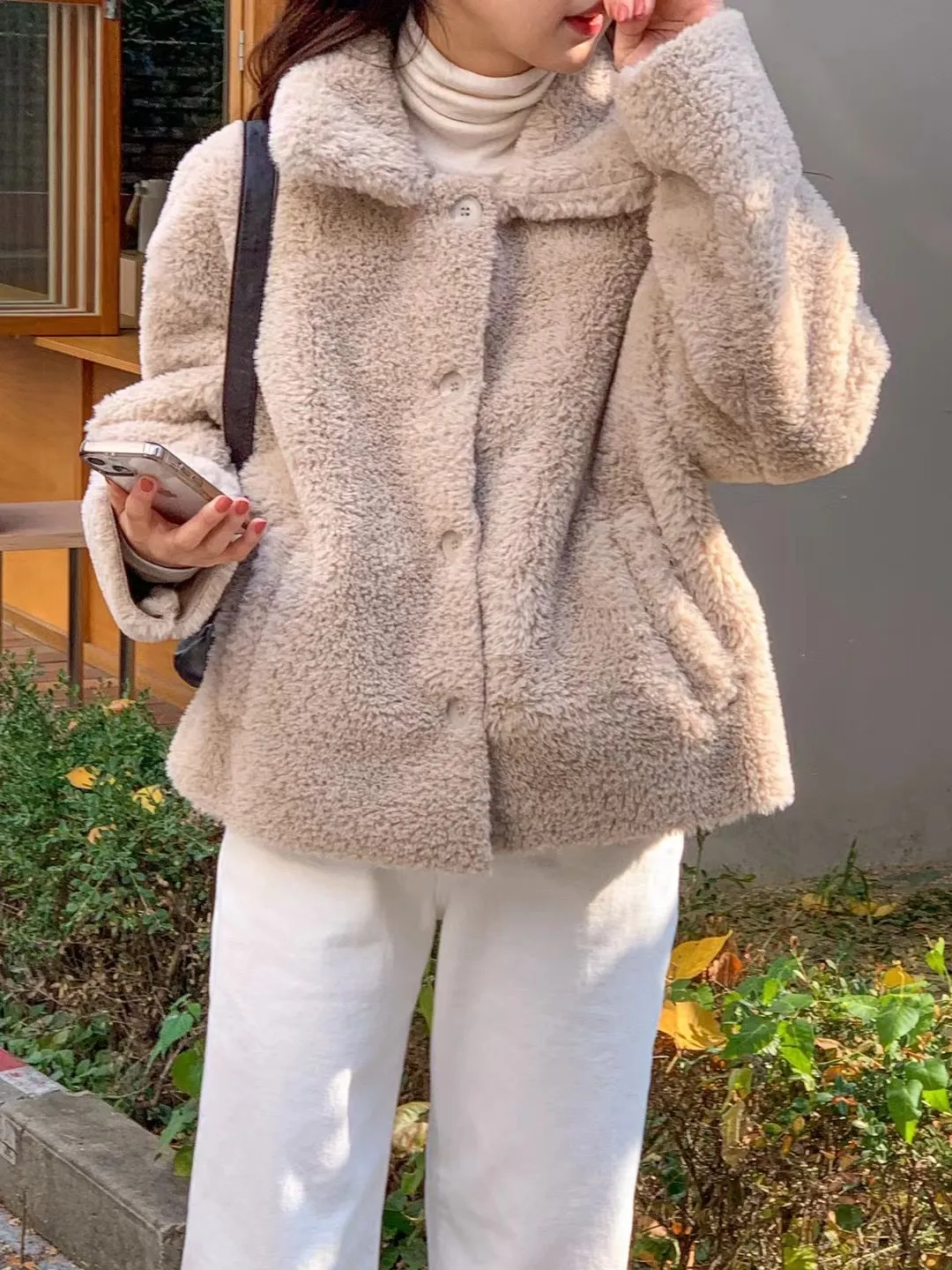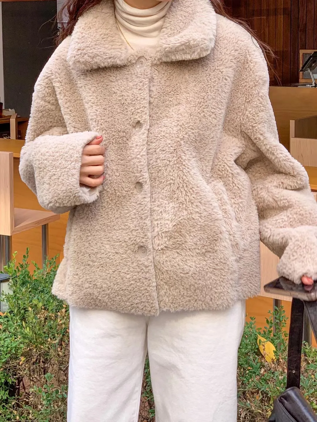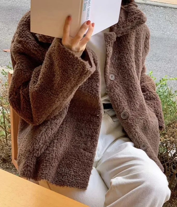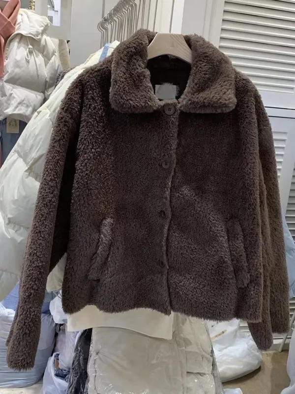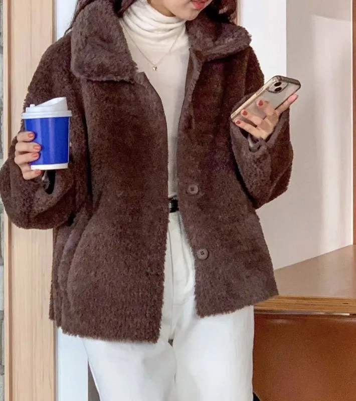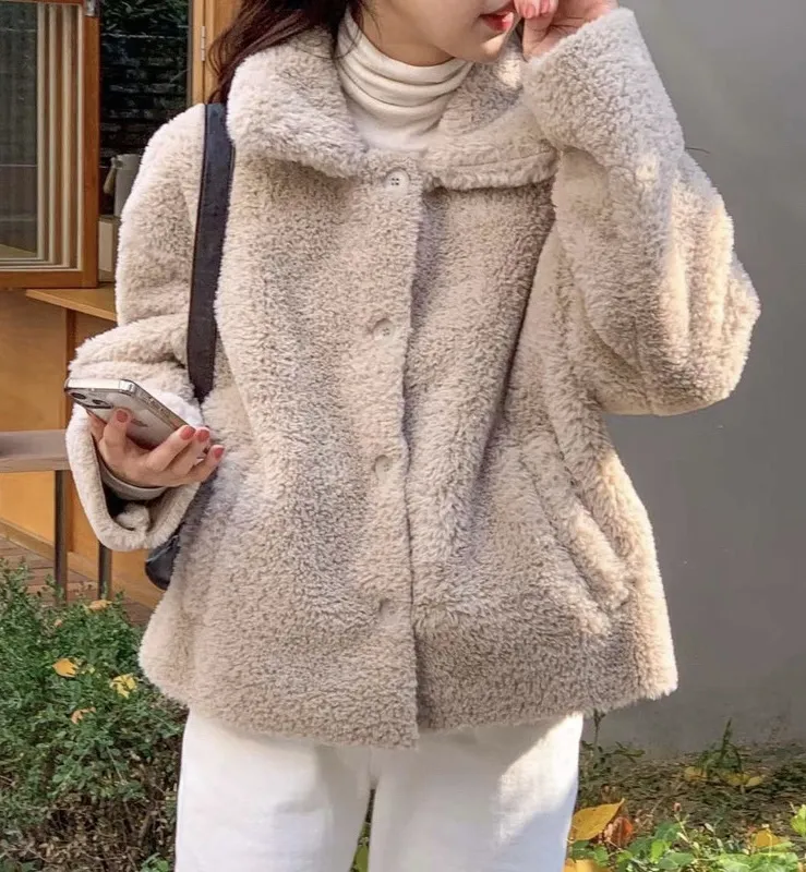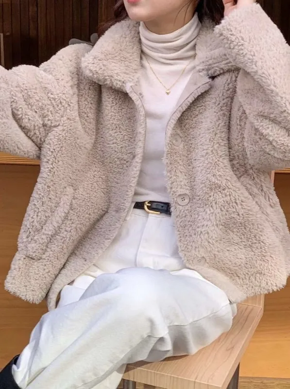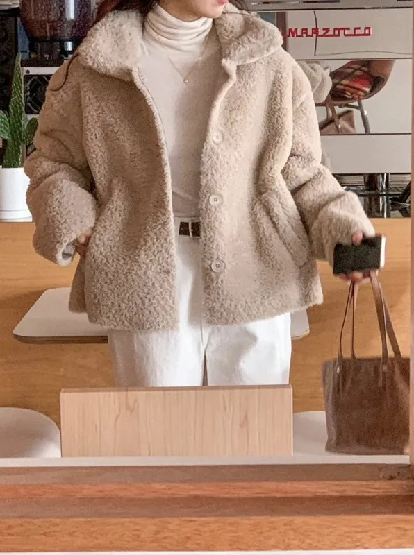 柔軟泰迪熊毛毛翻領外套
