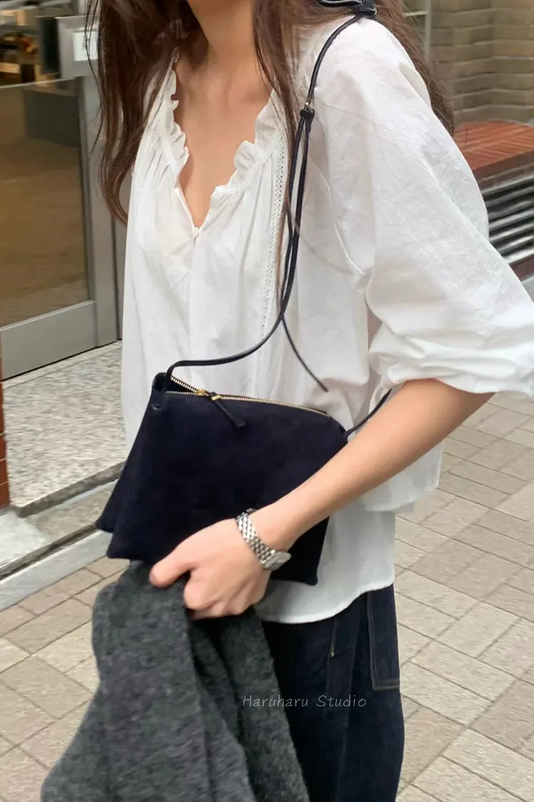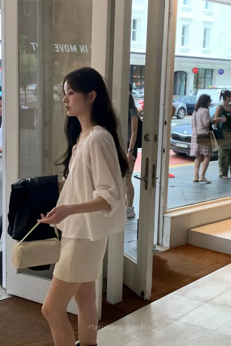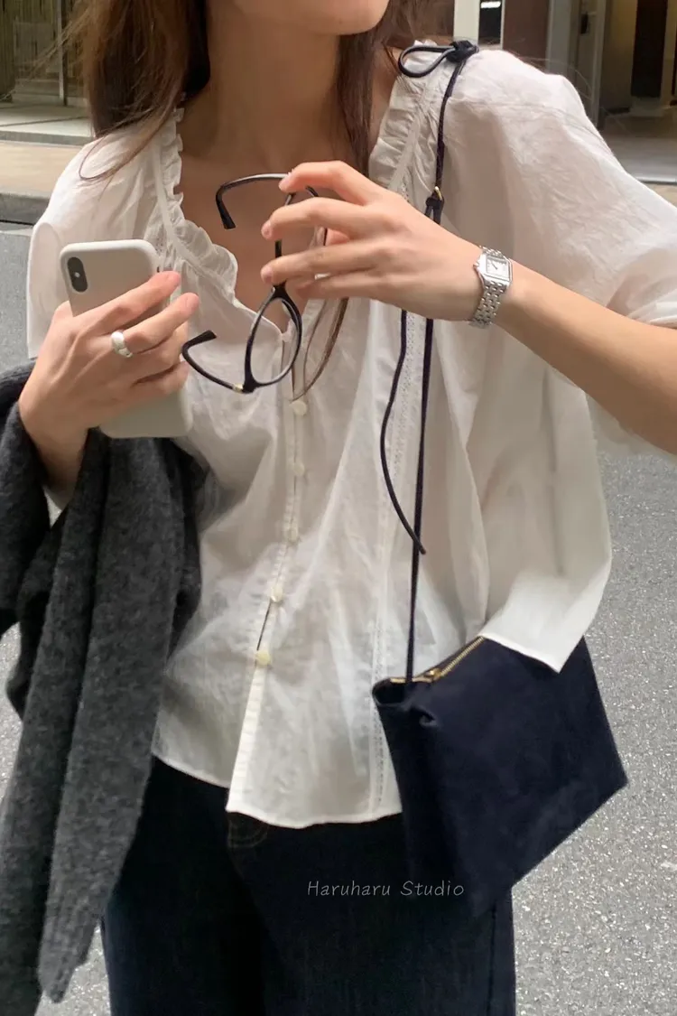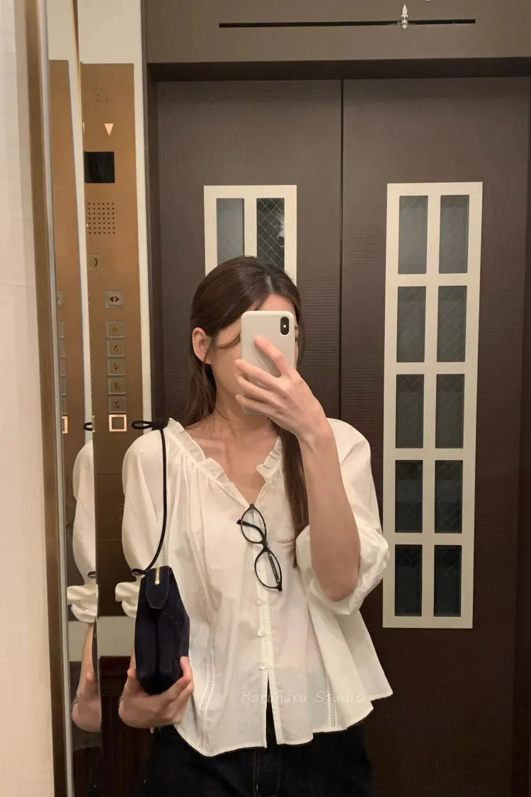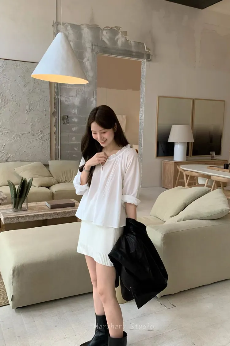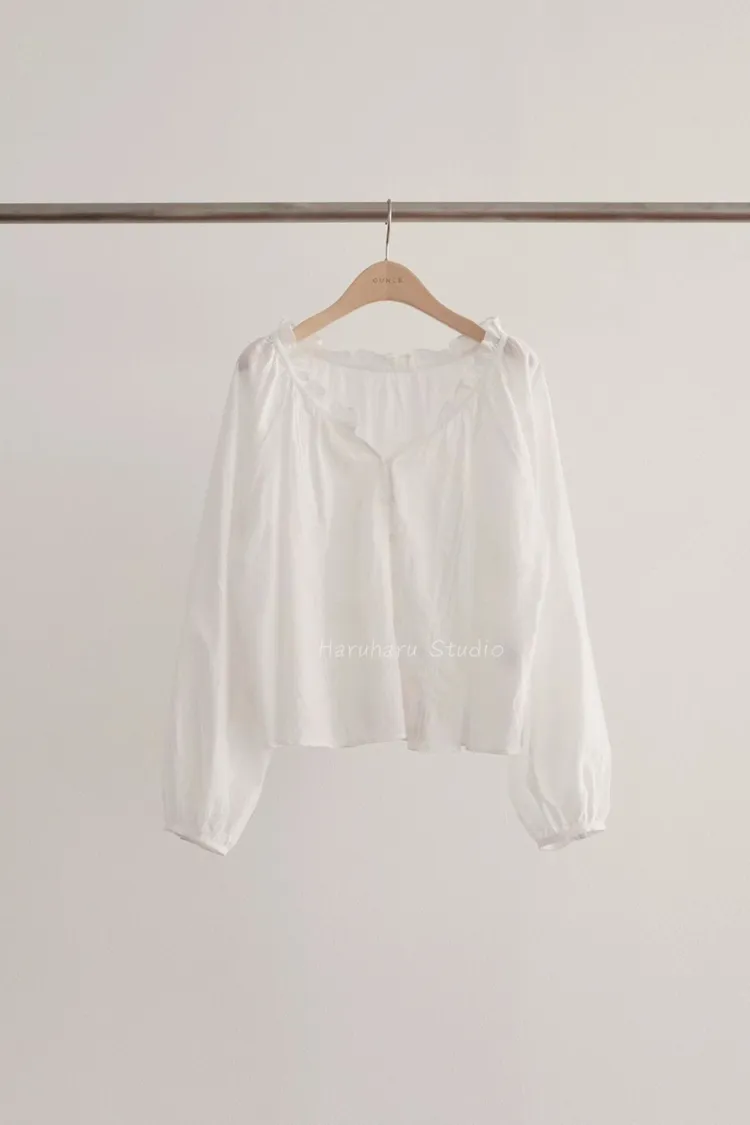 ounce輕棉荷葉滾邊寬領上衣