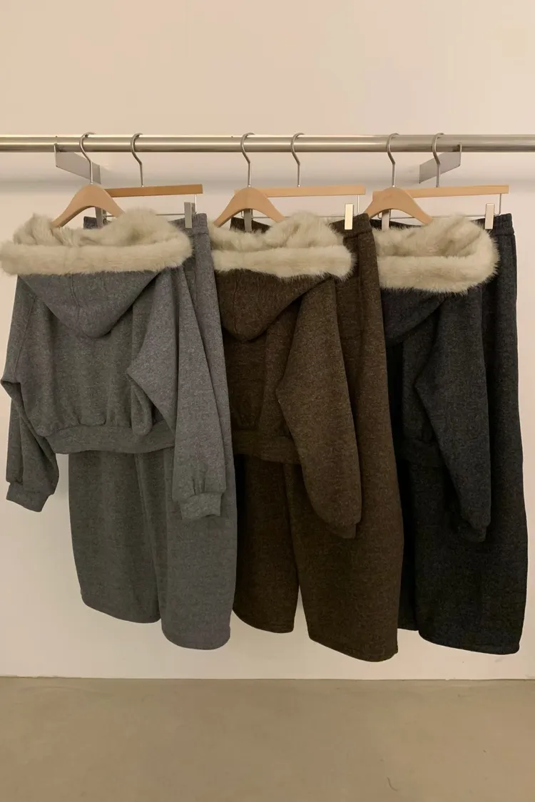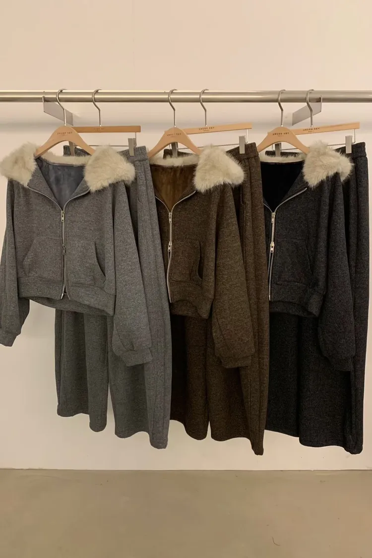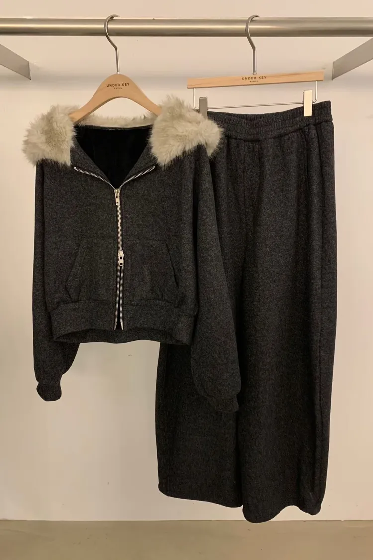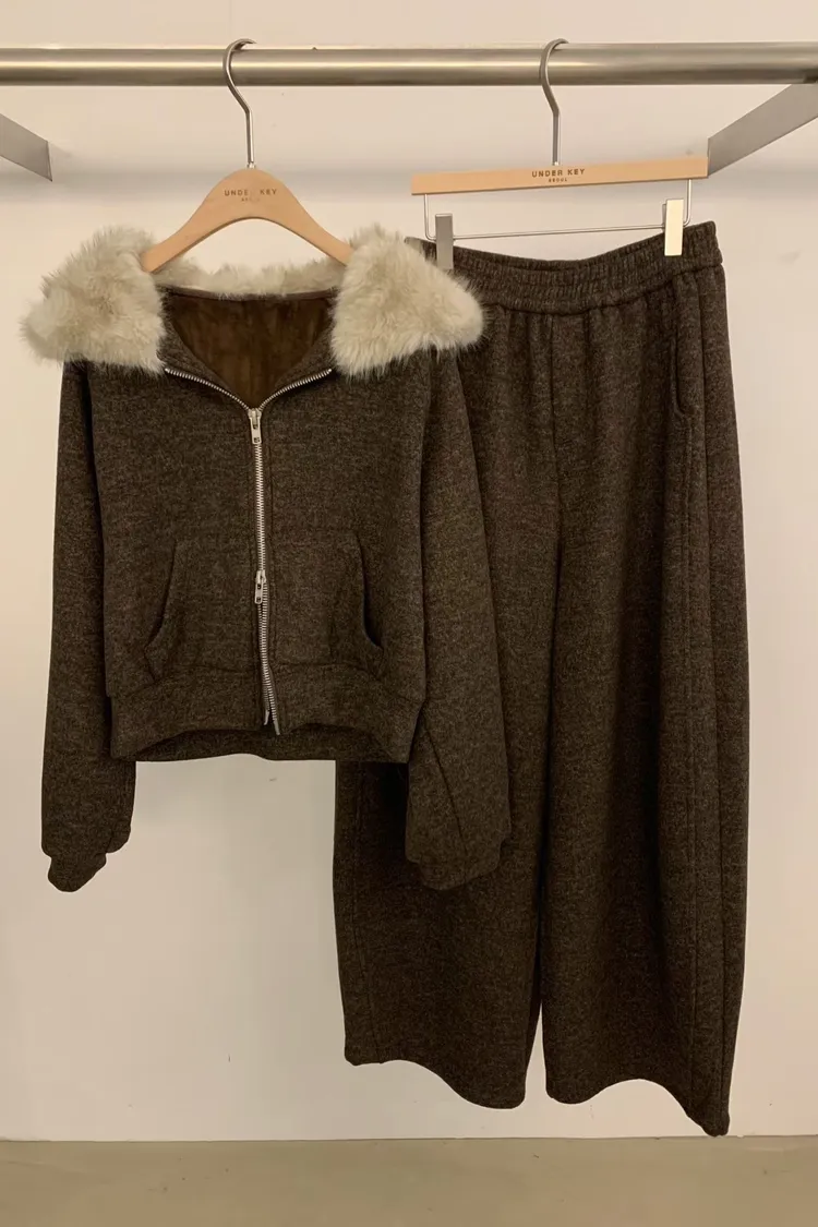 underkey狐狸毛連帽套裝